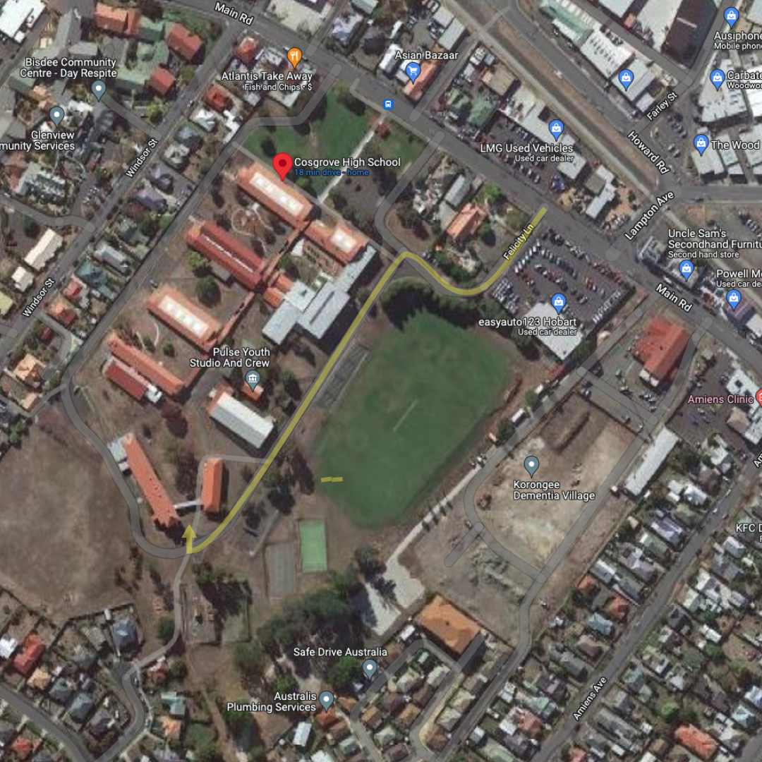 We are located at the back of the Cosgrove High School, 286 Main Road, Glenorchy